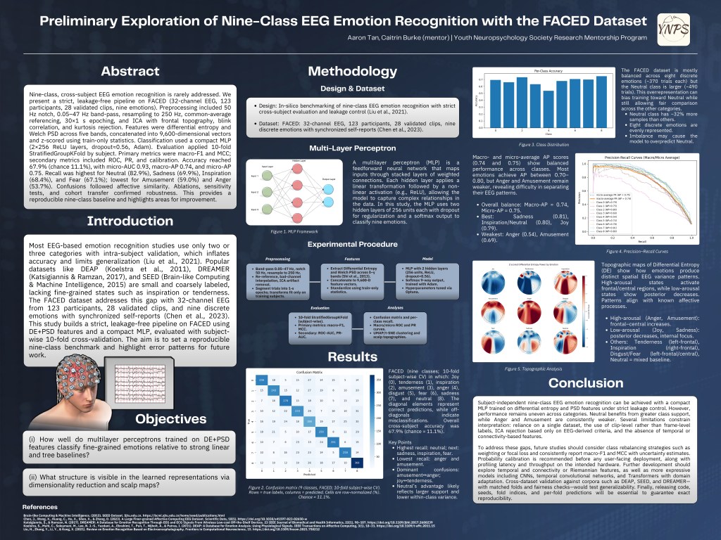 (i) How well do multilayer perceptrons trained on DE+PSD features classify fine-grained emotions relative to strong linear and tree baselines, and (ii) What structure is visible in the learned representations via dimensionality reduction and scalp maps?