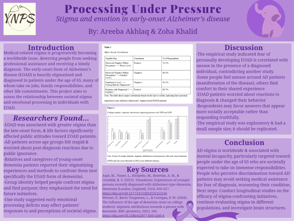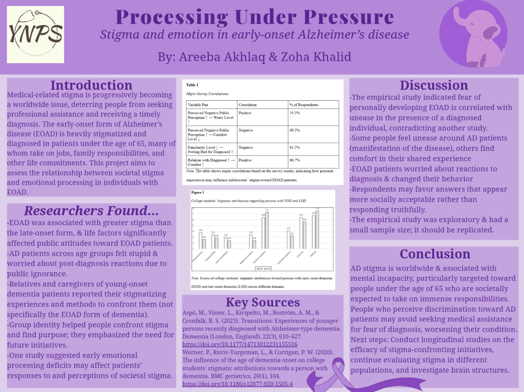 Afsa Tassnim (Grade 10, UAE): How early life trauma may lead to exaggerated neuroinflammatory responses in neurodegenerative diseases, especially in women.